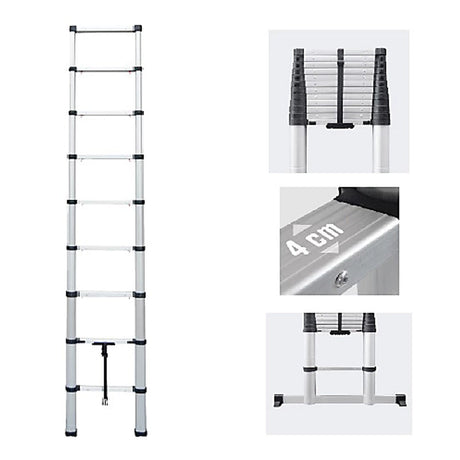 Pour un maximum de stabilité, l’échelle télescopique est équipée d’une barre stabilisatrice qui garantit un maintien optimal au sol et une meilleure répartition du poids de votre corps.
