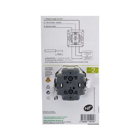 Interrupteur commande VMC - 2 vitesses - SCHNEIDER Odace - blanc