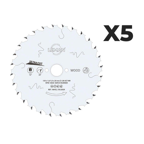 - LEMAN - Lot de 5 lames fines LEMAN pour le bois D216 mm X 30 X 2,0 - 48Z pour scie circulaire portative Stock très faibleLivraison gratuite en France Métropolitaine