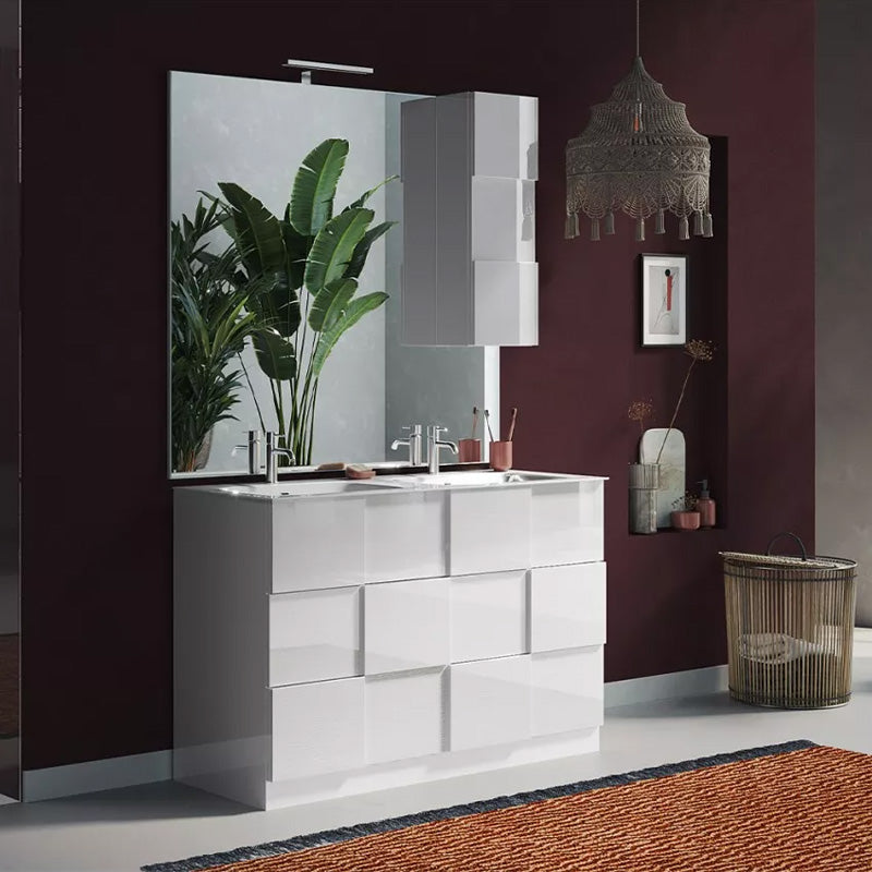 Conçu en Italie avec des matériaux de haute qualité, il garantit robustesse, durabilité et élégance. Ses trois tiroirs spacieux permettent de ranger facilement serviettes, produits de beauté et accessoires, tandis que le double lavabo en céramique apporte confort et praticité au quotidien.