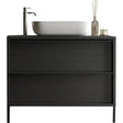 Le meuble est livré avec sa vasque à poser en céramique et deux tiroirs intégrés.