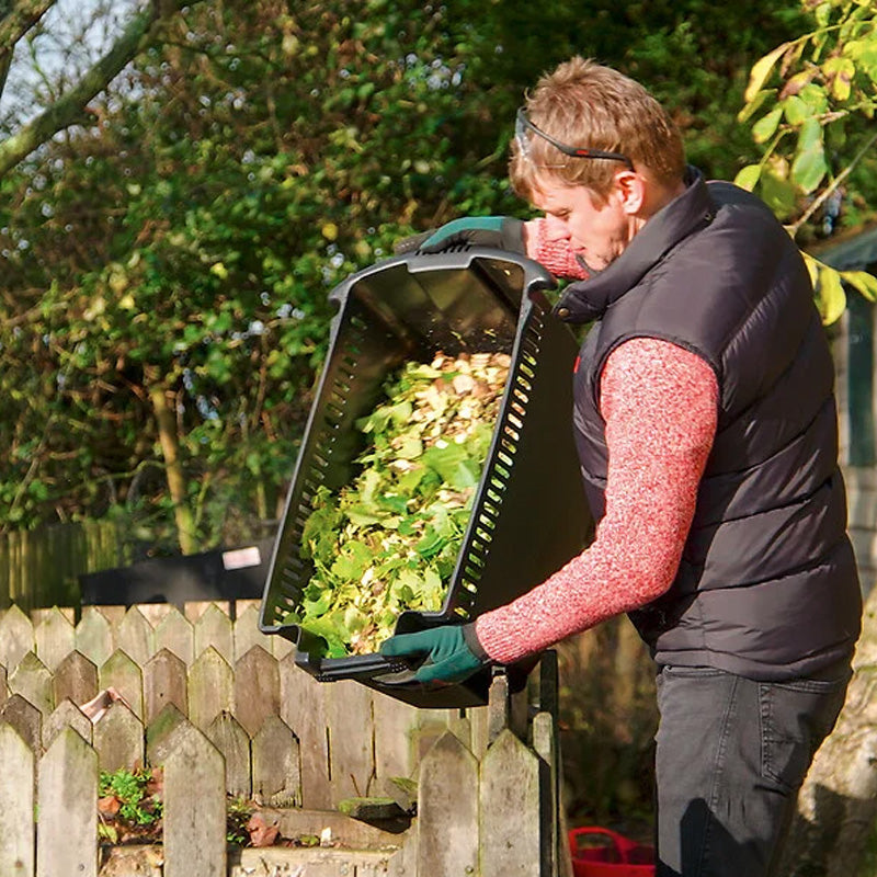 Avec son bac de ramassage de 53 L, il réduit la fréquence des vidages. Compact, il se range facilement en retirant l’entonnoir, ne mesurant alors que 67 cm de hauteur.