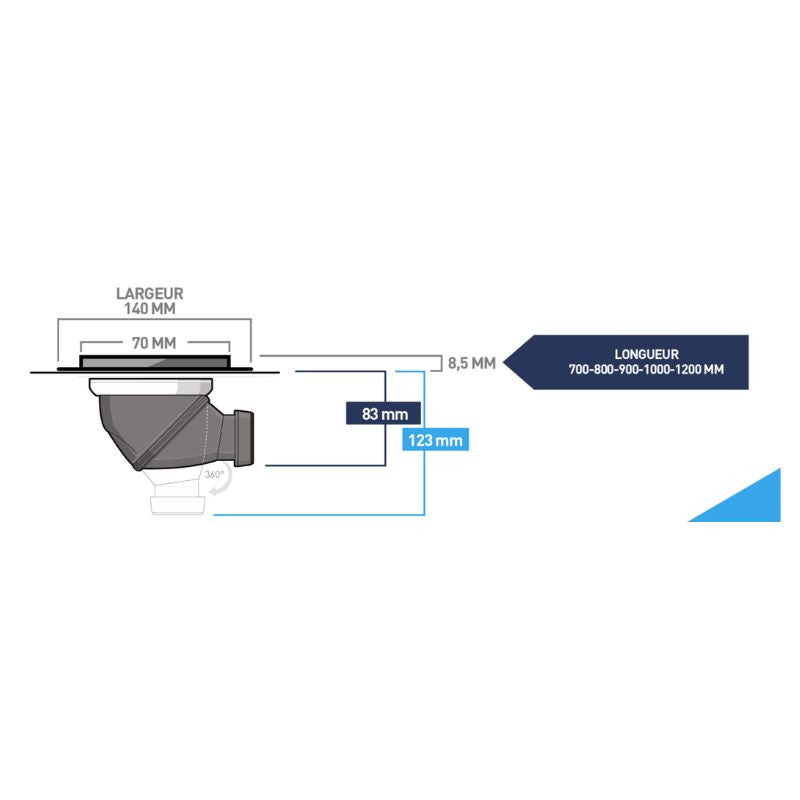 Caractéristiques techniques Caniveau de sol à maçonner MARMOX LD80 - Siphon 360° vertical/horizontal - Acier inoxydable - 80cm