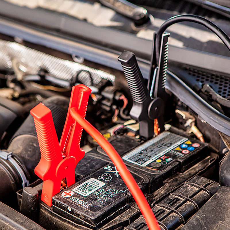 Câbles de démarrage NEO, longueur 2,5 m, destinés au démarrage d'urgence d'une voiture avec une batterie déchargée.
