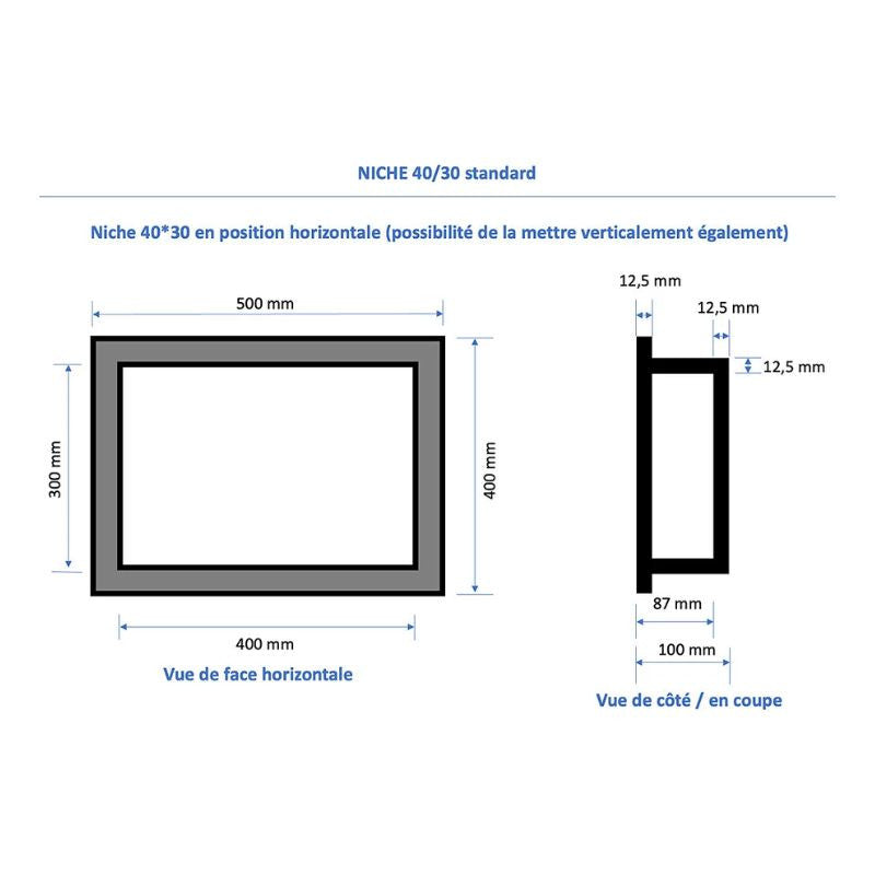 Vous pouvez positionner cette niche de manière verticale ou horizontale : longueur et largeur sont interchangeables