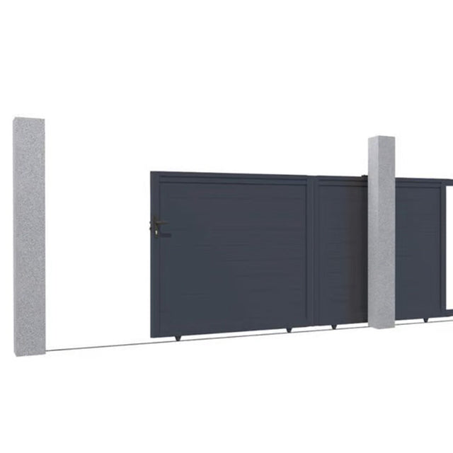 - Portail coulissant en aluminium robuste, conçu pour résister aux intempéries sans se détériorer.