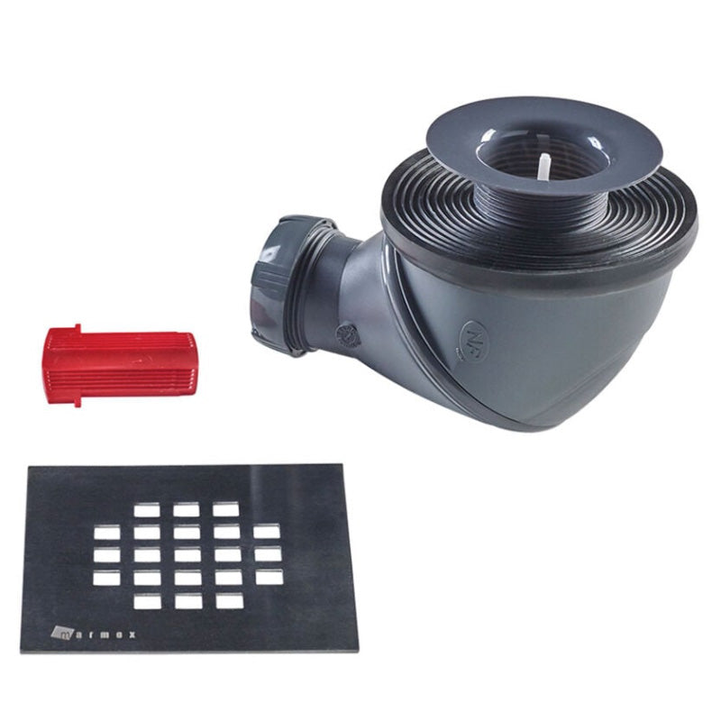 Receveur résine MARMOX imitation marbre noir - grille carrée centrée