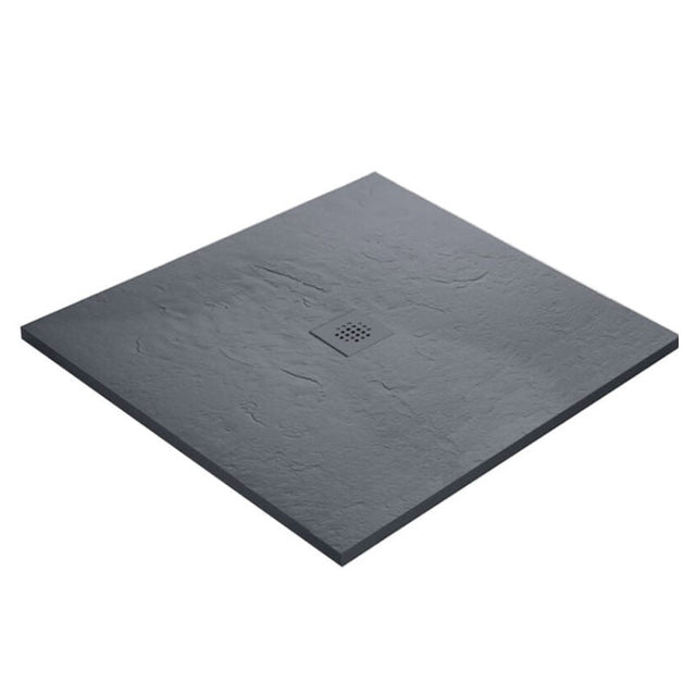 Receveur résine MARMOX imitation marbre noir - grille carrée inox excentrée